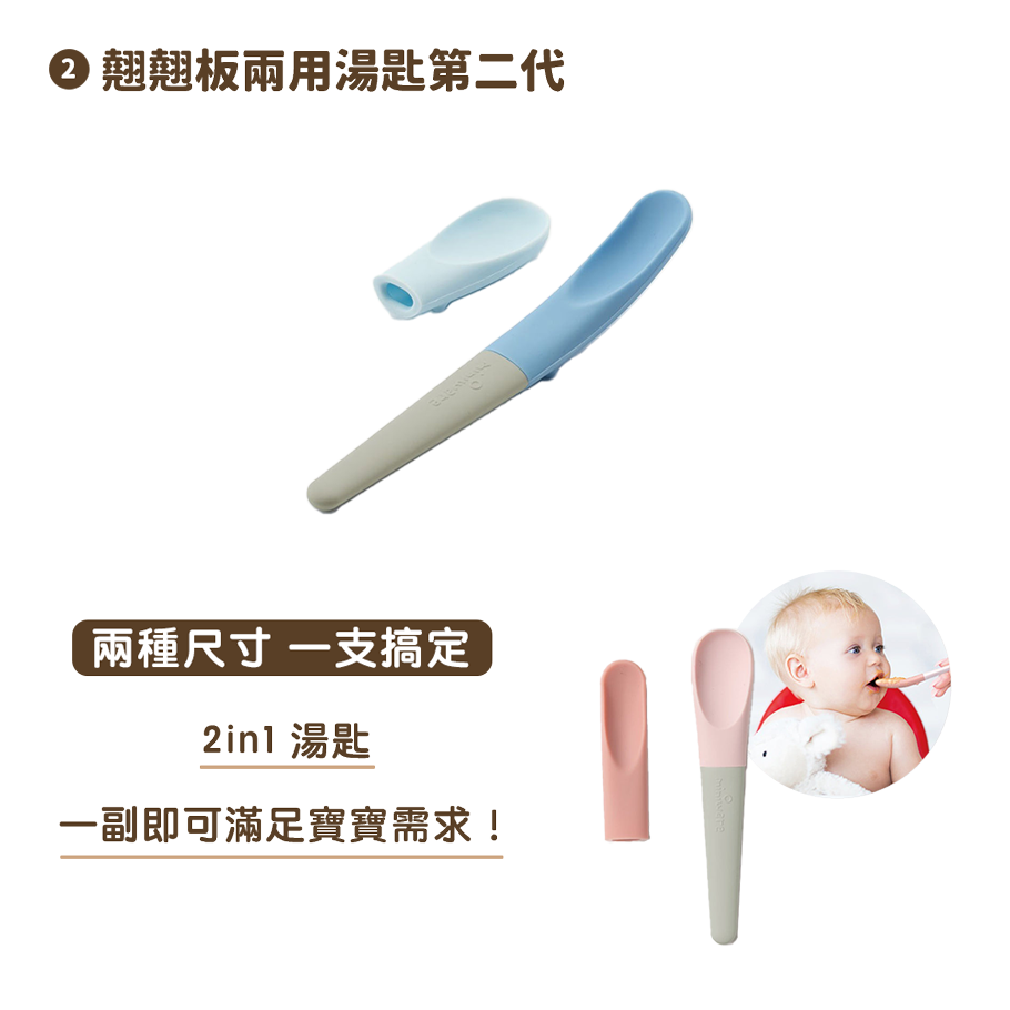 【雙用湯匙組】翹翹板第二代湯匙含兩款勺頭,可依寶寶成長靈活替換