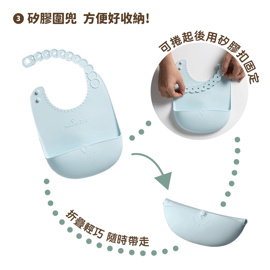 【矽膠圍兜防漏】柔軟舒適不勒脖,立體接食槽設計,減少弄髒衣物