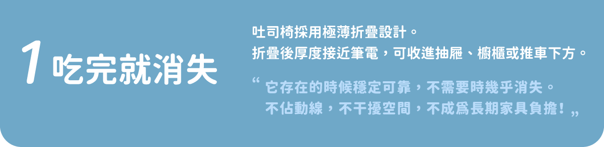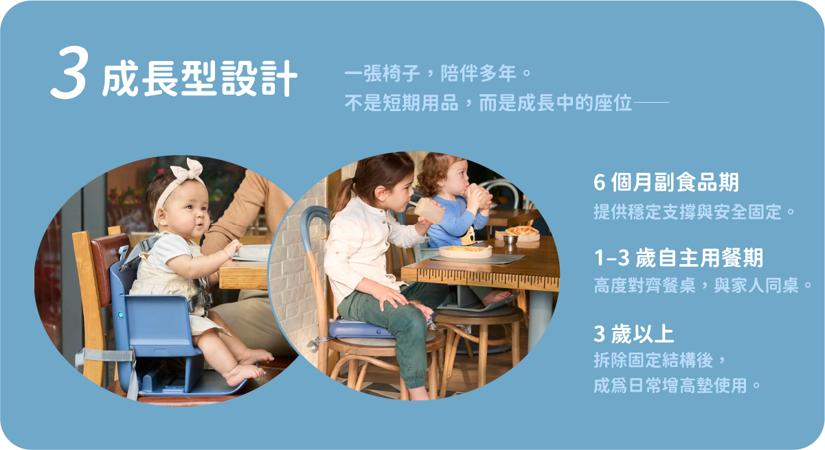 這款摺疊後僅有「薄片吐司」厚度的 Ru™ Booster 摺疊餐椅,兼具「安全性、輕量化、高便利」結構穩固且安裝直覺,讓你在每個場景,都能優雅地為孩子準備好位置,在親友家、在餐廳、給孩子專屬的座位,重新定義你的隨行育兒美學!