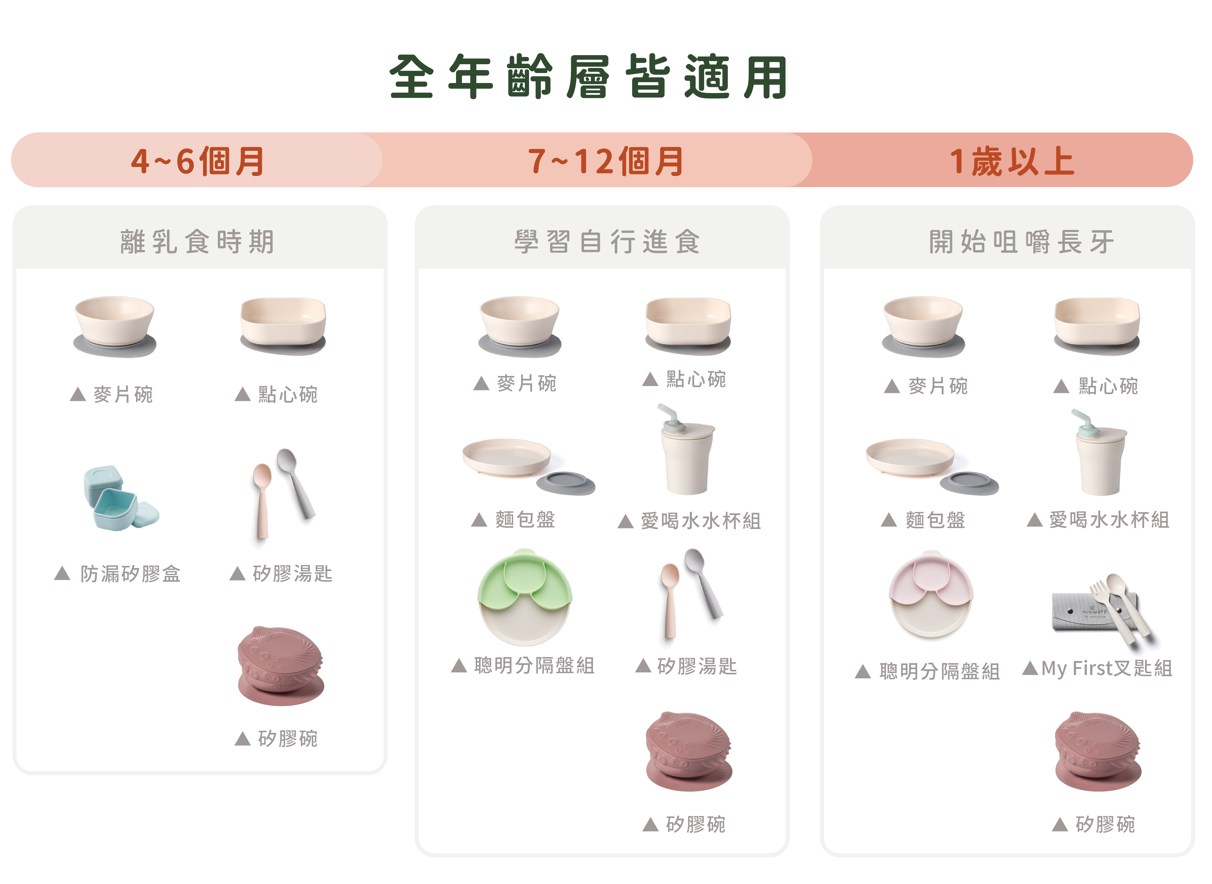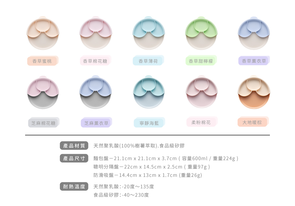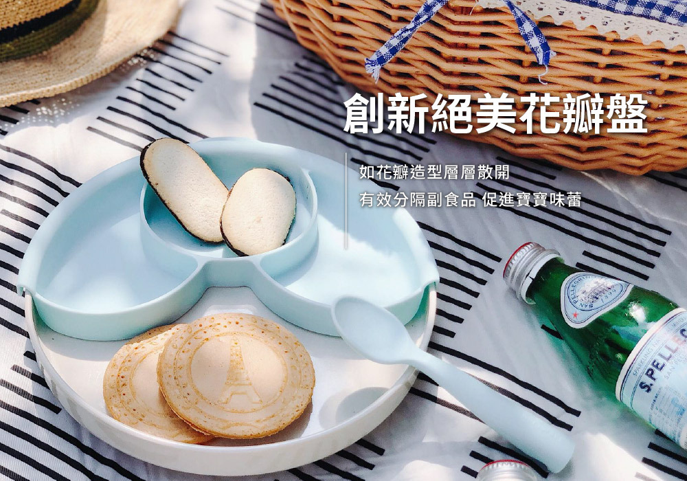 ① 麵包盤:超大盤面,適合訓練寶寶自主進食,方便寶貝抓取,可疊放不佔空間